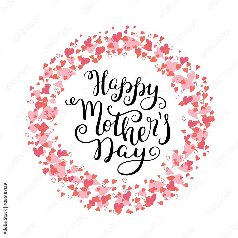 Hand Lettering Happy Mother S Day With Hearts Wallpaper Mural - Decorly Solutions | Decorly Solutions