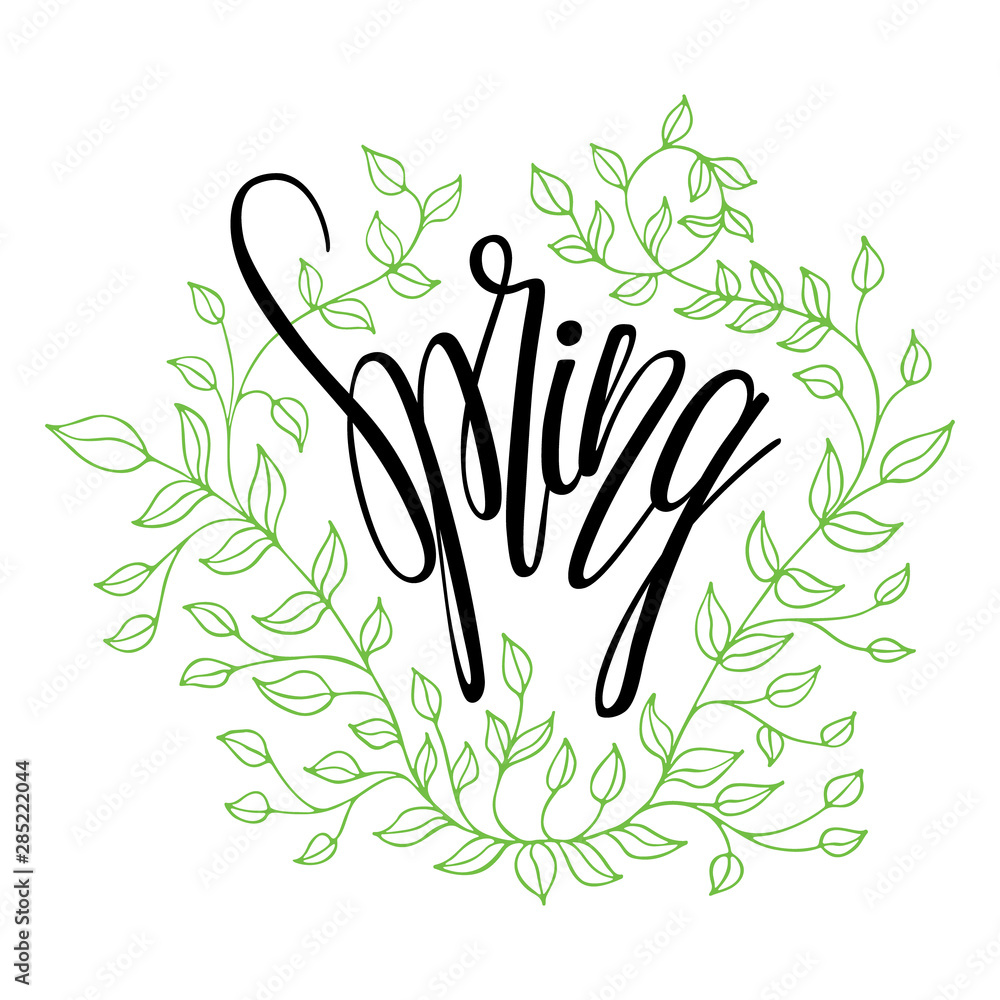 Hand Lettering Spring With Green Branches Wallpaper Mural - Decorly Solutions | Decorly Solutions