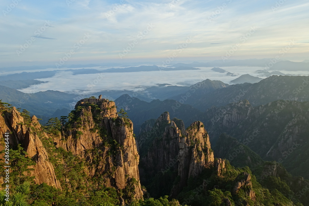 Montagnes Huangshan Chine Au Lever Du Soleil Avec Wallpaper Mural - Decorly Solutions | Decorly Solutions