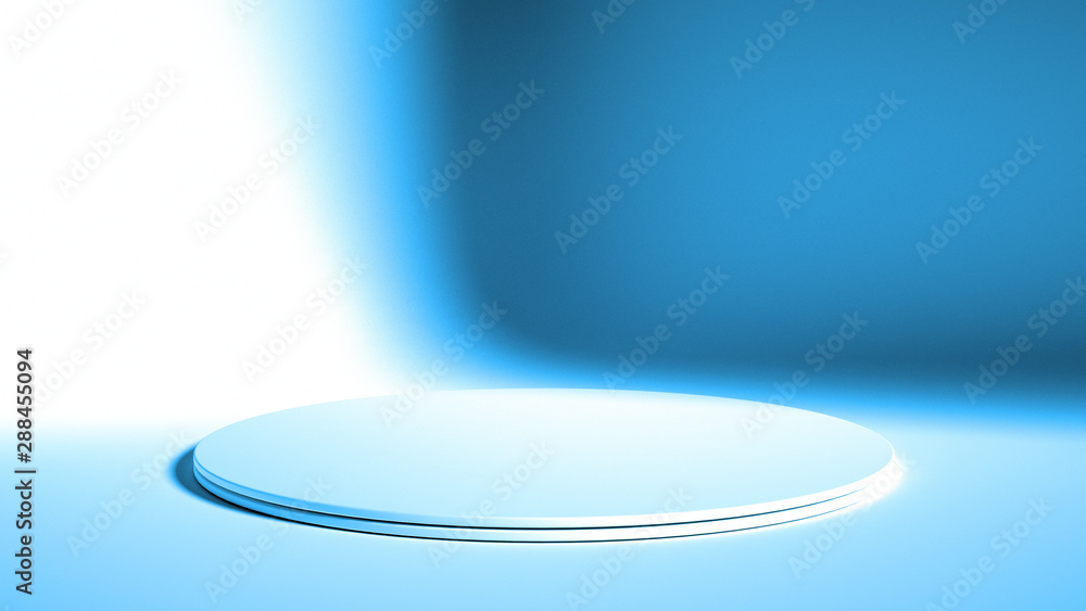 White Circular Platform With Blue Neon Light Accent Podium Stage