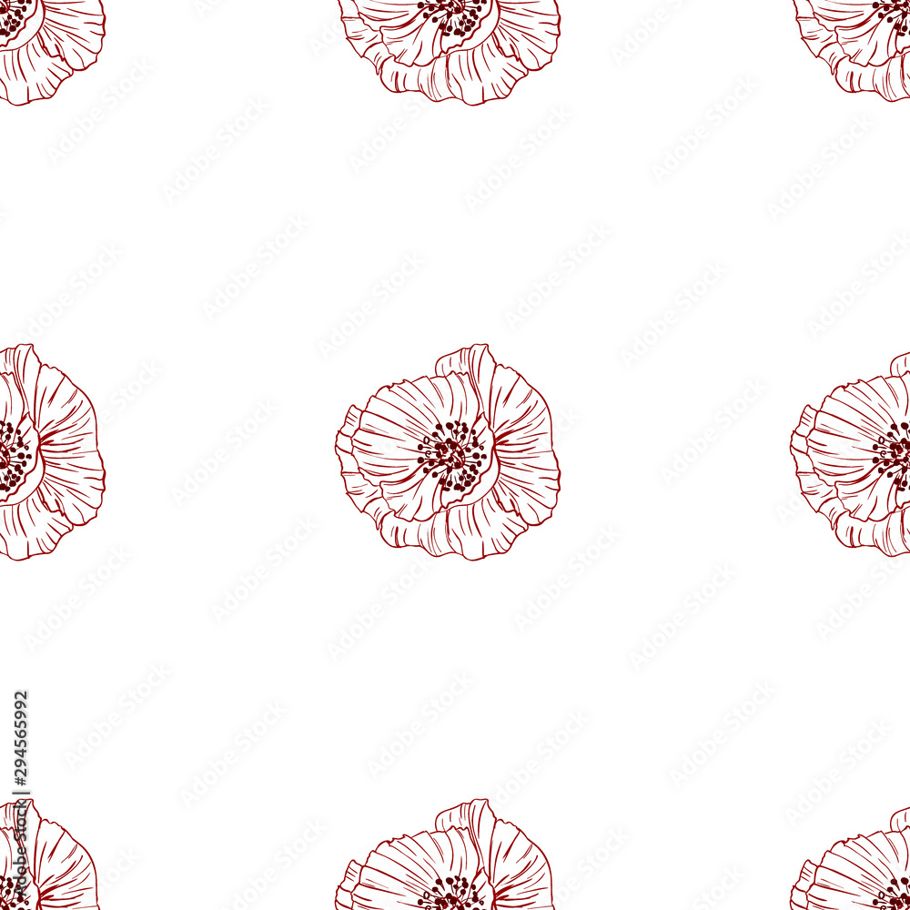 Flourish Poppies Pattern In Line Art Style Poppy Wallpaper Mural - Decorly Solutions | Decorly Solutions