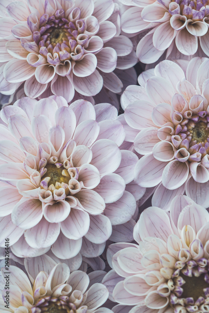 Flatlay Of Blooming Dahlia Flowers In Pale Pink Wallpaper Mural - Decorly Solutions | Decorly Solutions