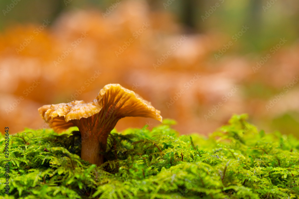 A Single Yellow Foot Winter Mushrooms Craterellus Tubaeformis Wallpaper Mural - Decorly Solutions | Decorly Solutions