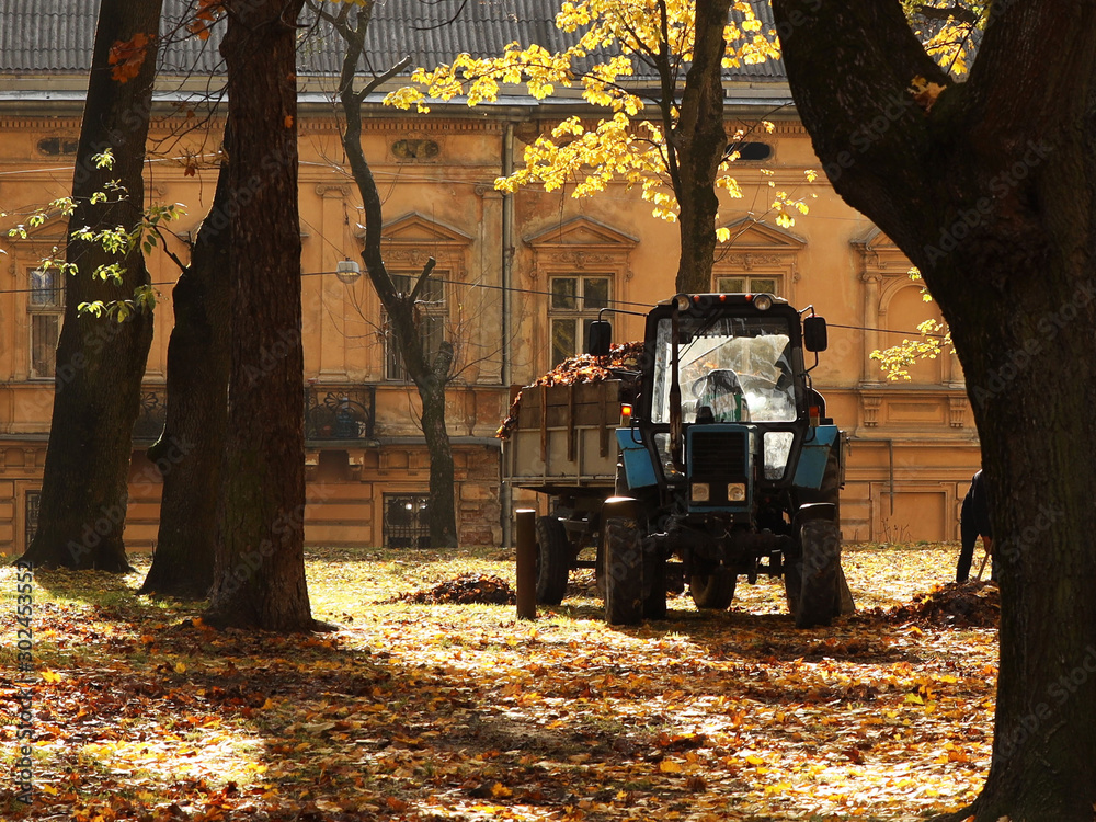 Tractor Among The Trees In The Autumn Park Wallpaper Mural - Decorly Solutions | Decorly Solutions