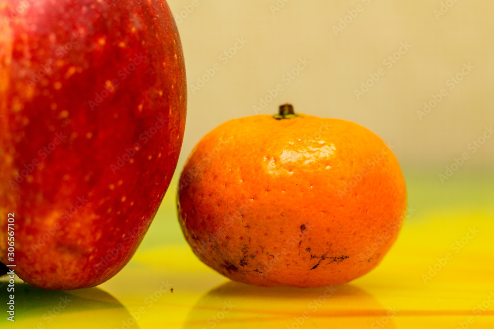 Tangerine near Apple Photo Background Wallpaper