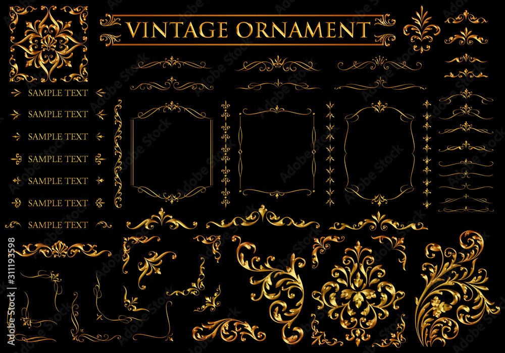 Vintage Ornament Set Metallic Golden Pattern Wallpaper Mural - Decorly Solutions | Decorly Solutions
