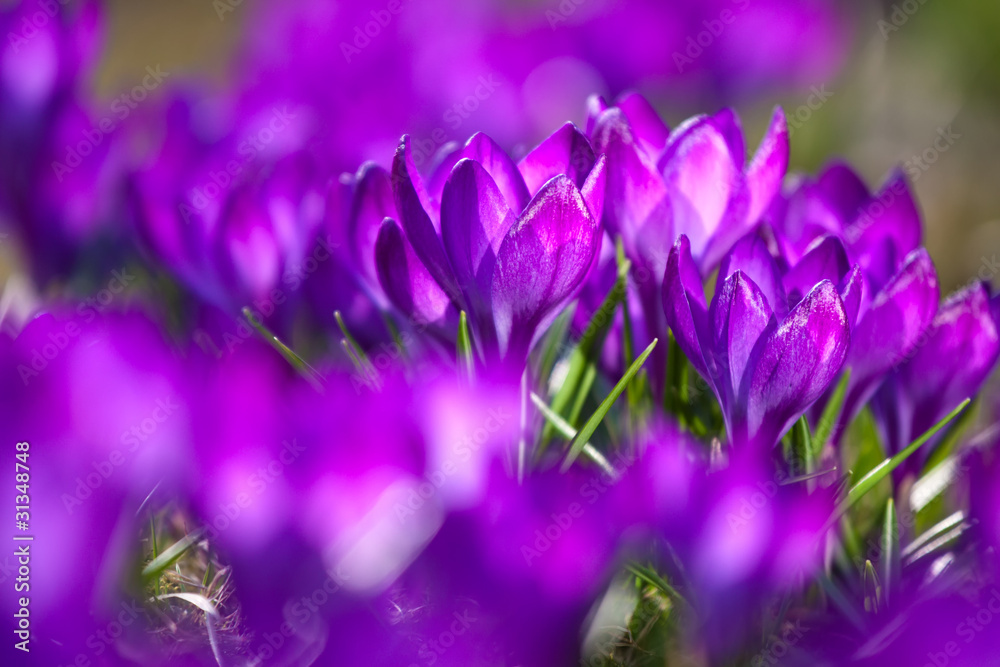 Bunch Of Violet Crocuses In The Grass Wallpaper Mural - Decorly Solutions | Decorly Solutions