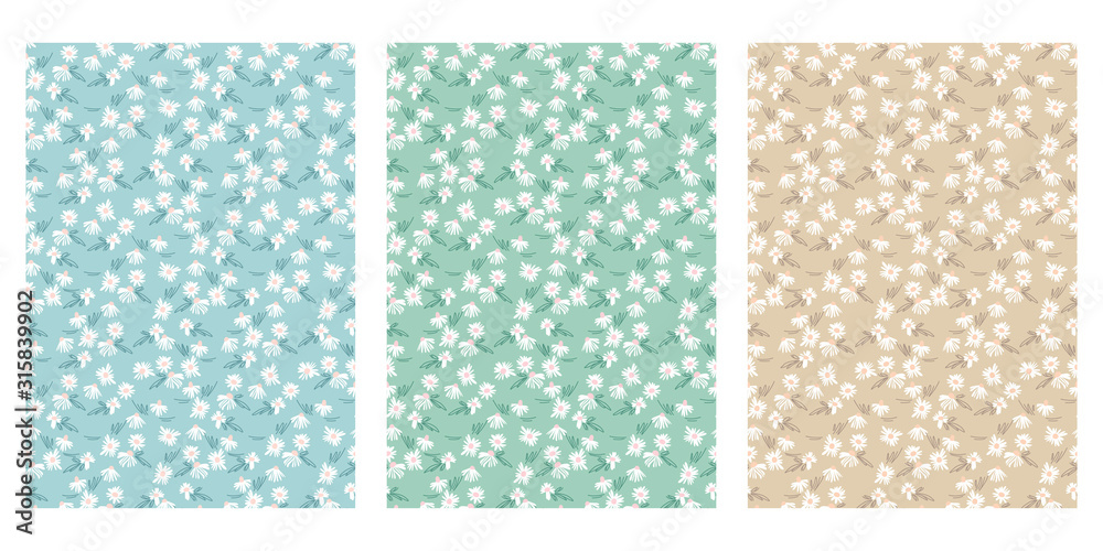Wallpaper multi colored set of seamless patterns with floral ornaments