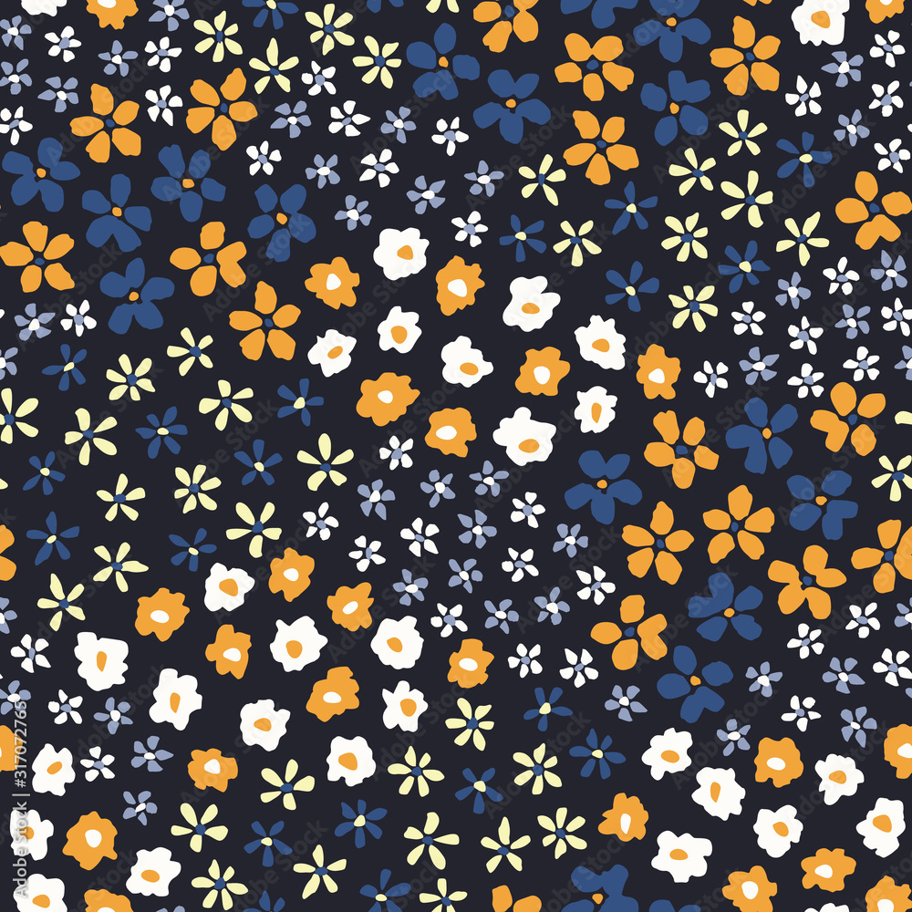 Colorful Ditsy Allover Graphic Daisies Blooms On Black Wallpaper Mural - Decorly Solutions | Decorly Solutions