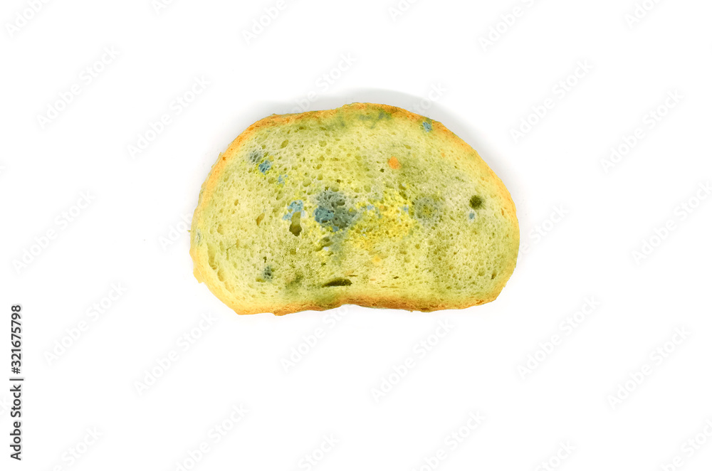Four Slices Of Bread Covered With Mold Isolated On A White Background