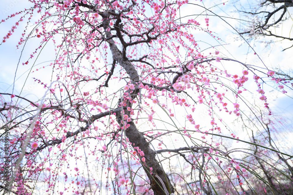 枝垂れ梅と梅林と青空