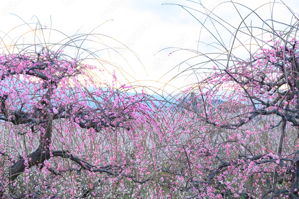 背景素材に使いやすい早春のイメージ 青空の梅の花