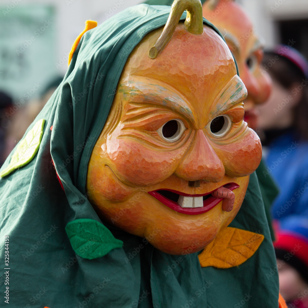 Closeup Portrait Of A Masked Person On A Carnival Parade