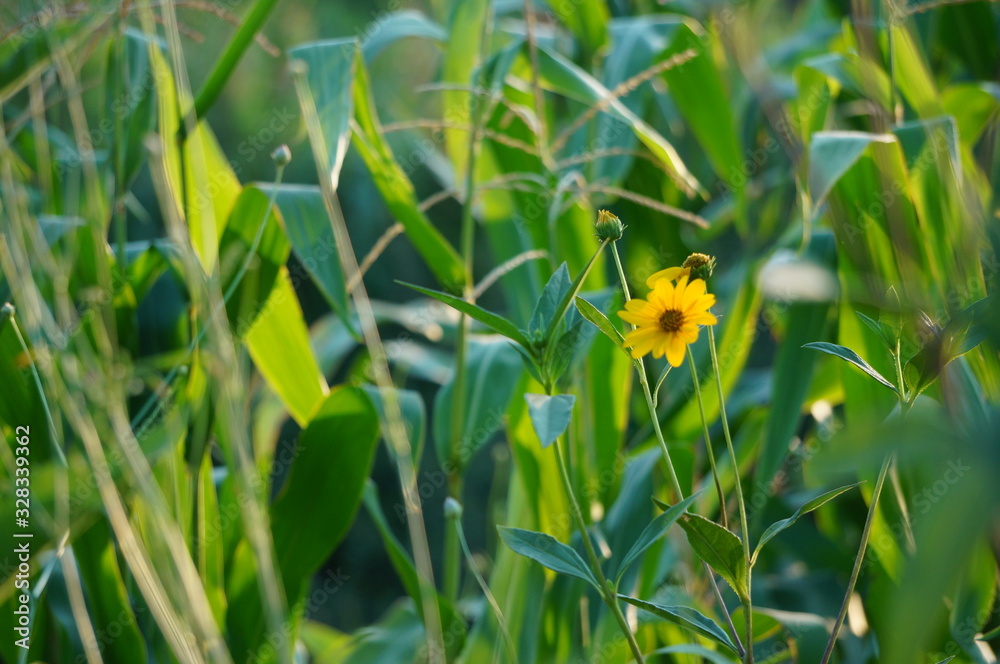 Oenothera biennis, common evening primrose yellow flowers macro selective focus