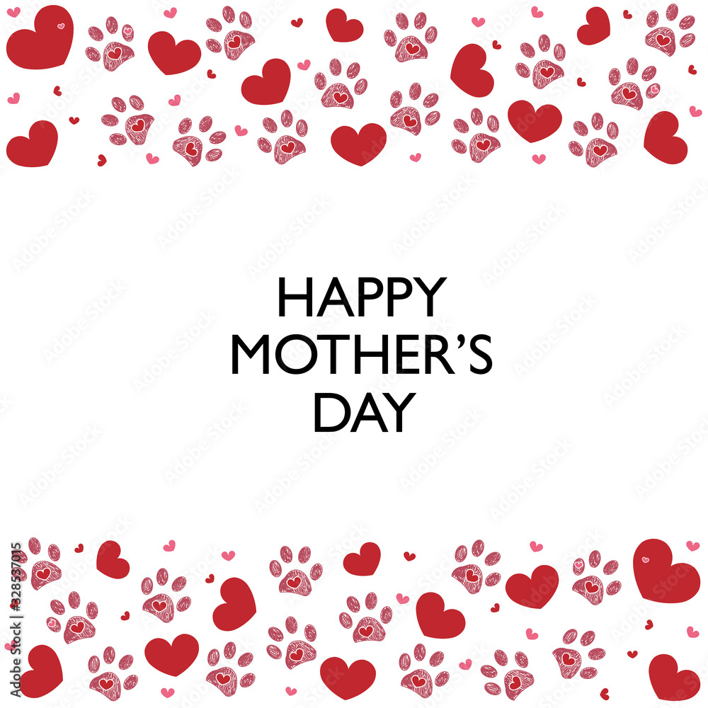 Red Hearts And Paw Prints Happy Mother S Wallpaper Mural - Decorly Solutions | Decorly Solutions