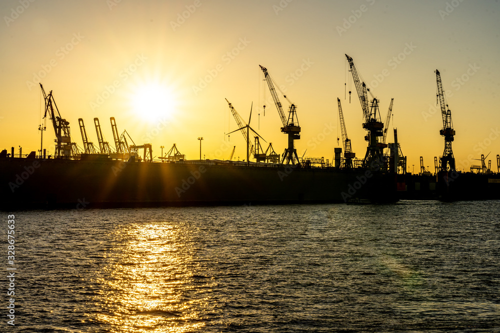 ship at bridge 10 famous fish buns at landungsbrücken in Hamburg, germany
