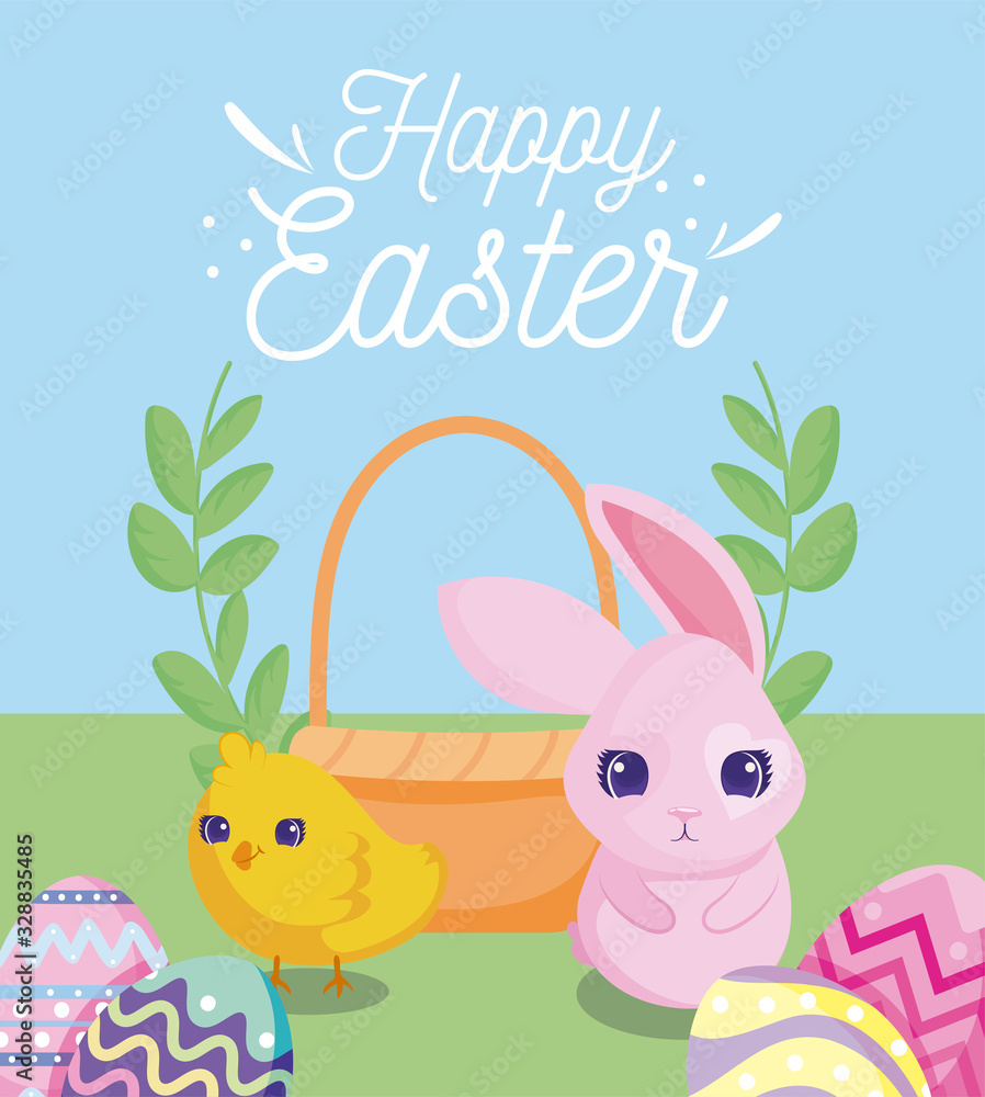 Happy easter design of basket with cute rabbit and chicken c Wallpaper