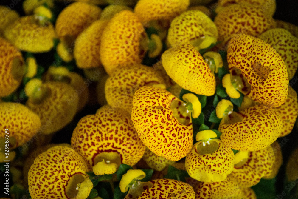 Yellow colored Calceolaria Biflora ; Turkish name lady bag flower