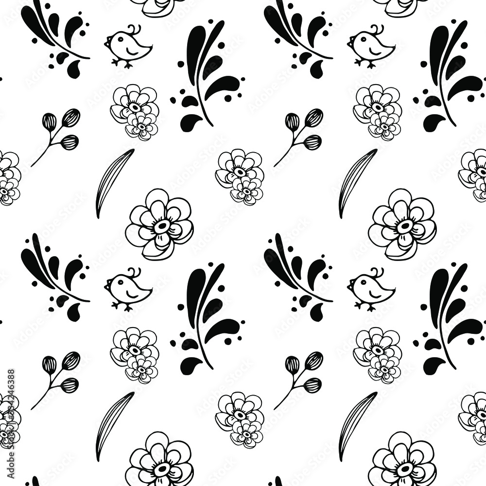 Seamless Pattern Of Eggs And Plant Elements Hand-drawn Wallpaper Mural - Decorly Solutions | Decorly Solutions