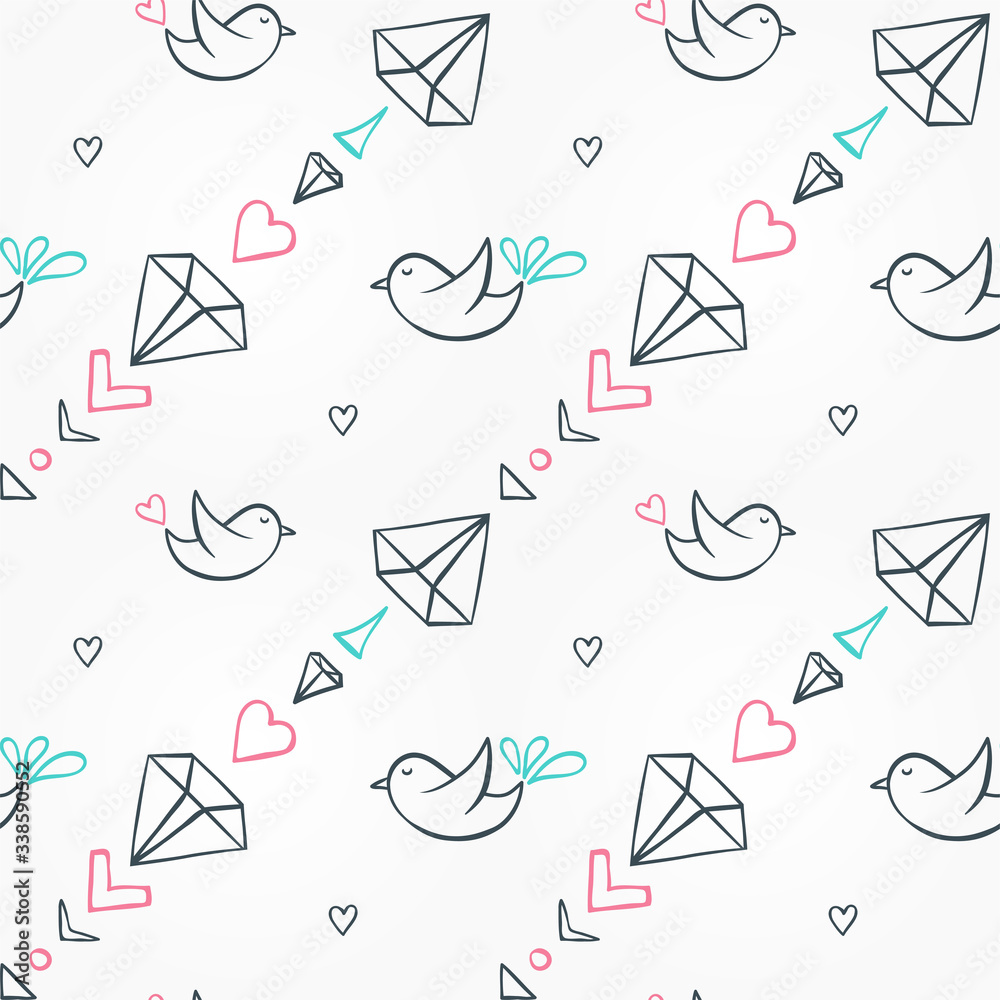 Seamless pattern with birds diamonds hearts Wallpaper