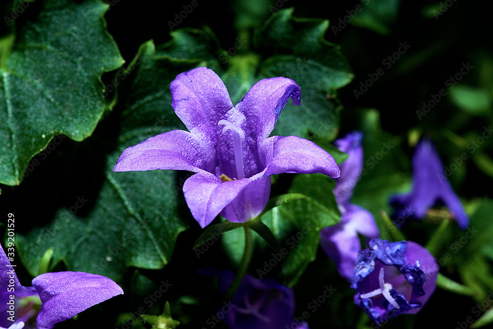 Blooming Campanula - A Close-Up of Purple Bellflowers in Sunlight.