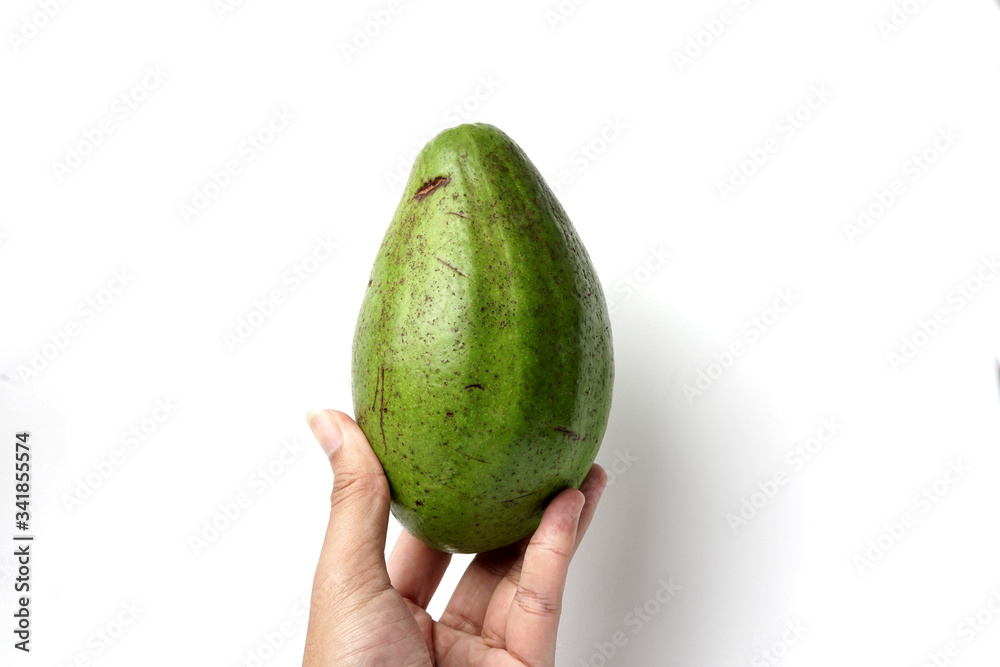 Avocado fruit "Persea americana" fresh green isolated on whi Wallpaper