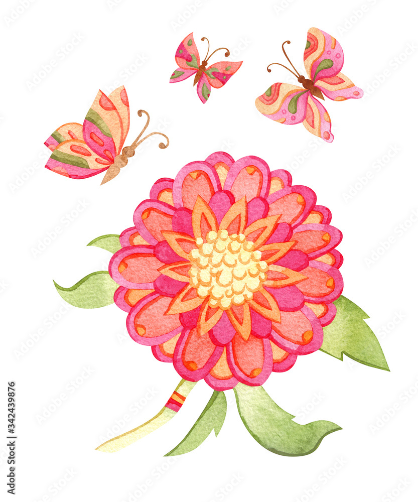 Watercolor floral iluustration Flower and butterfly romantic Wallpaper