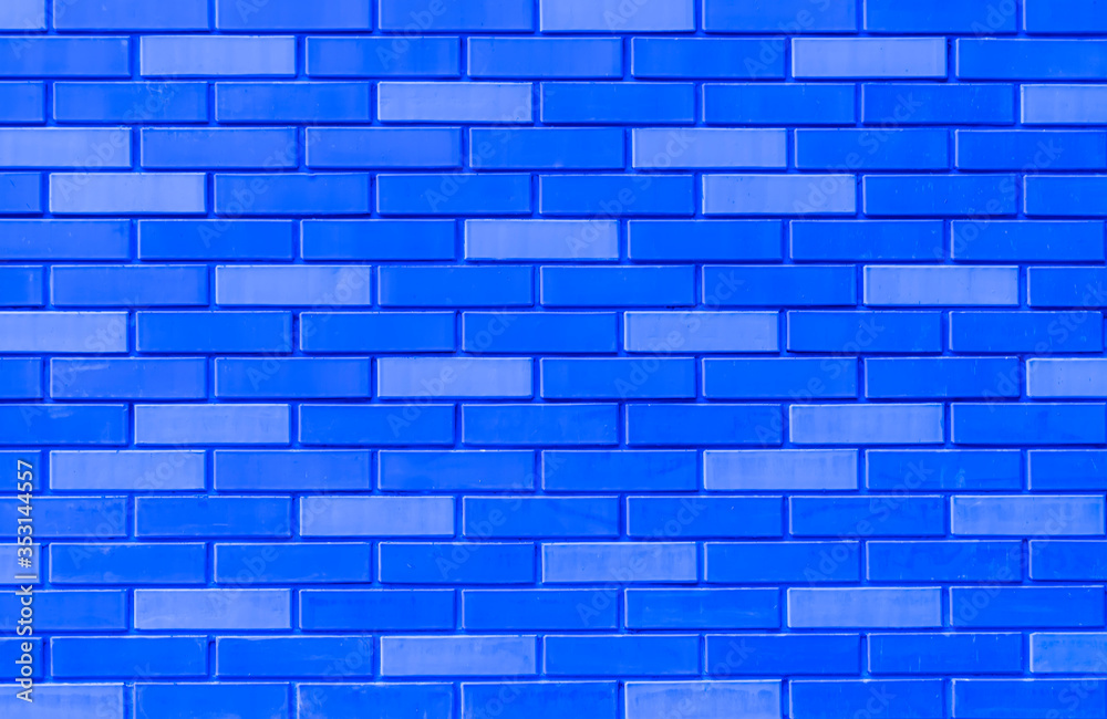 A vibrant blue brick wall with a gradient effect and subtle shadows
