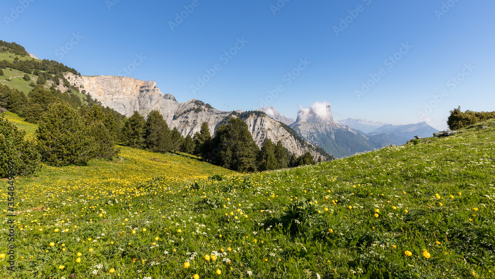 mountain landscape in the Vercors with Mont Aiguille and Grand Veymont, France
