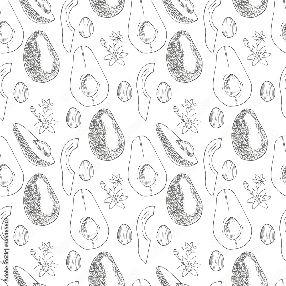 Avocado seamless pattern on a white background Botanical ill Wallpaper