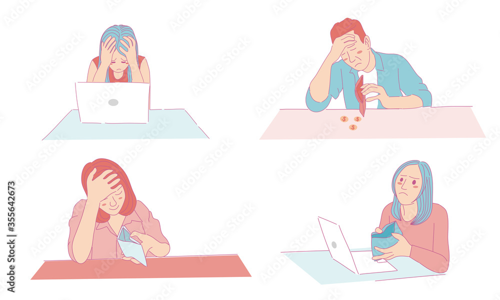 Sad People Character With Wallet Broke People Hand Wallpaper Mural - Decorly Solutions | Decorly Solutions