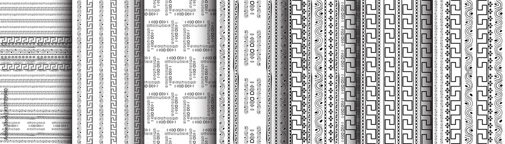 Set Fasion Black Line On White Backgraund With Egypt Motif Seamless Pattern For Fabric, Print, Wallpaper, Packaging. Strocke Trandy Design.