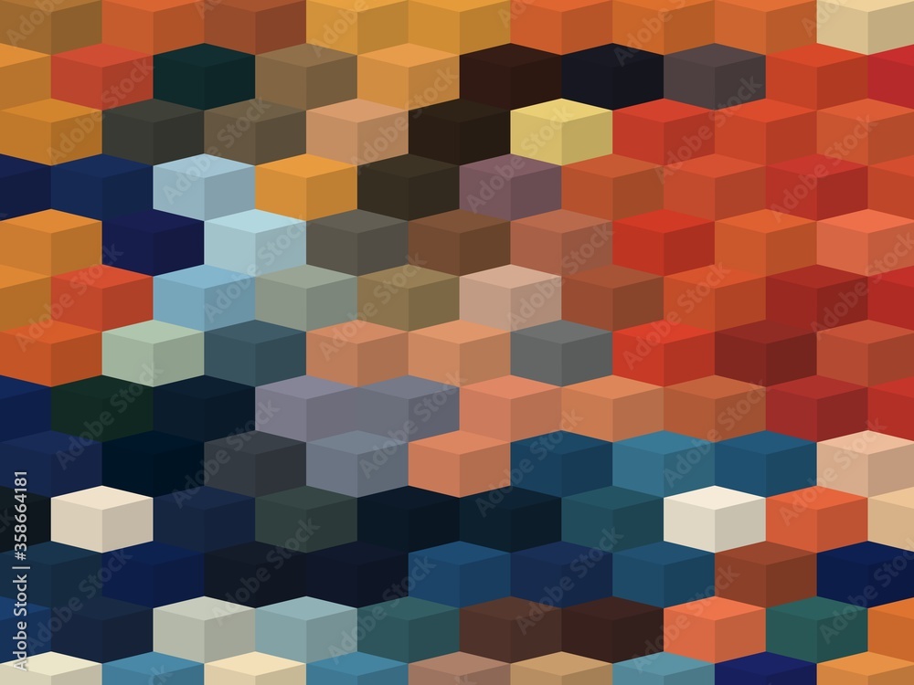 Colorful Geometric Square Mosaic Pattern Design with Abstract 3D Cubes for Seamless Decoration on Yellow Wall