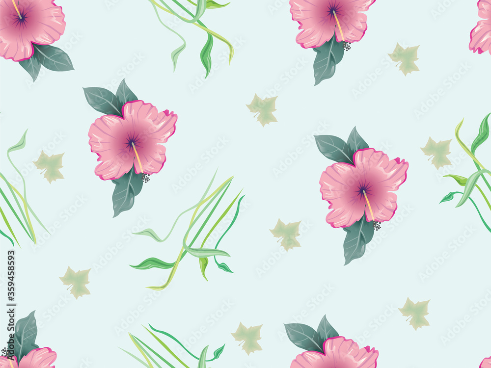 Seamless leaves with vector flower Pattern on   Background