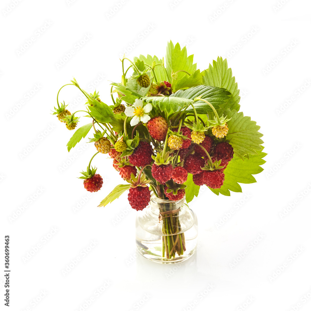 Wild Srewberries With Leaves Isolated On White Background Wallpaper Mural - Decorly Solutions | Decorly Solutions