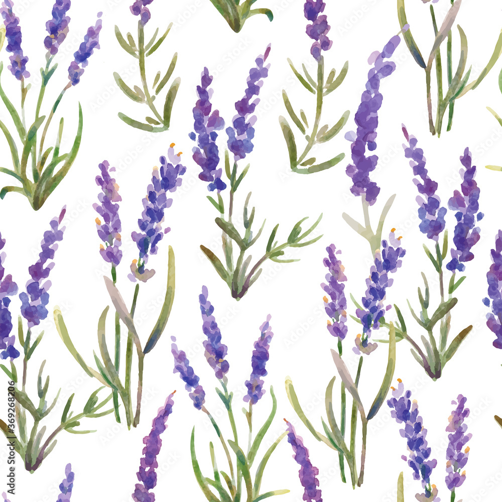 Vector Illustration Seamless Pattern Of Lavender Flowers Watercolor Wallpaper Mural - Decorly Solutions | Decorly Solutions