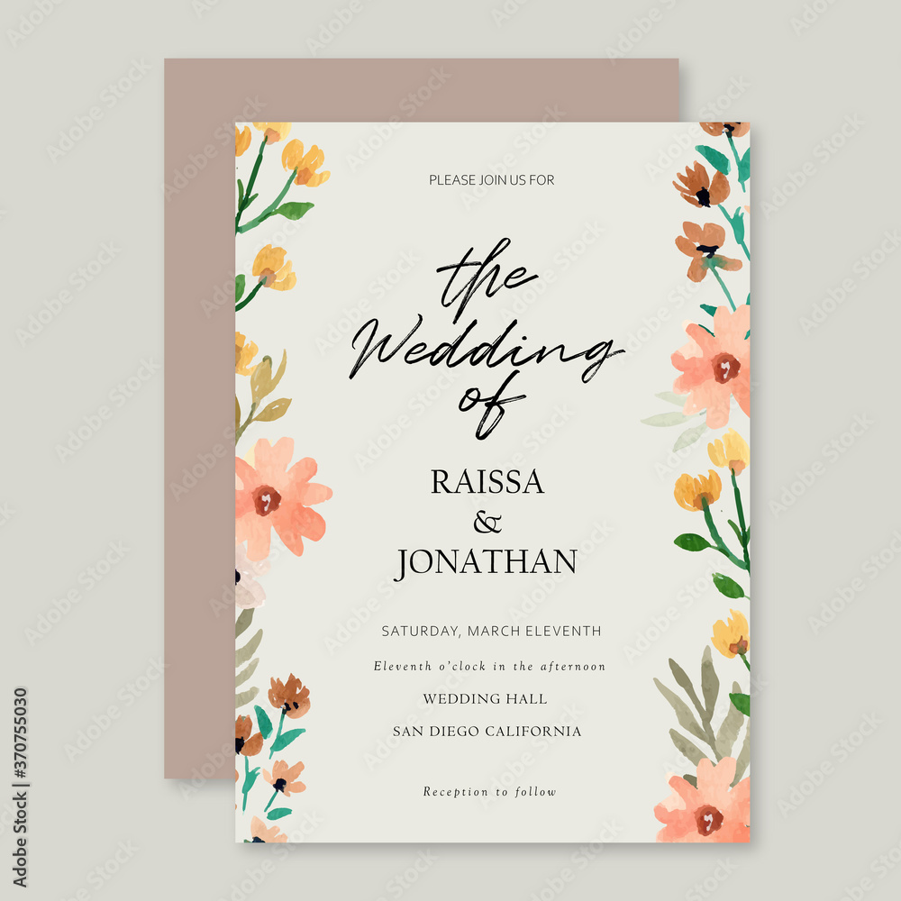 Wedding Invitation Simple Floral Watercolor Wallpaper Mural - Decorly Solutions | Decorly Solutions