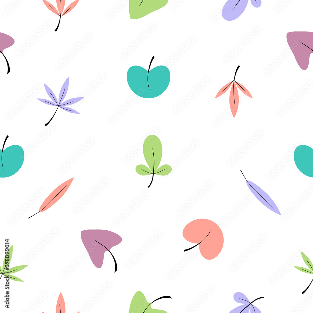 Seamless Pattern Colorful Leaves White Background Wallpaper Mural - Decorly Solutions | Decorly Solutions