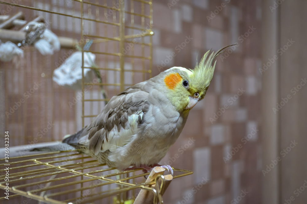 portrait of parrot cockatiel, cockatiel close-up, home parrot