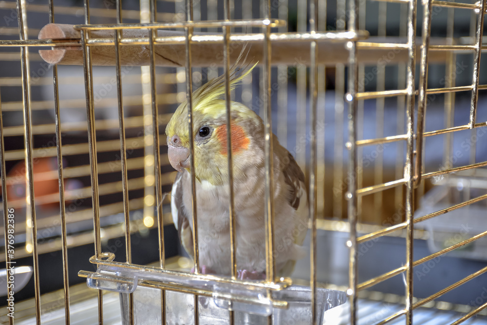 Parrot Gray Cockatiel In Cage Wallpaper Mural - Decorly Solutions | Decorly Solutions