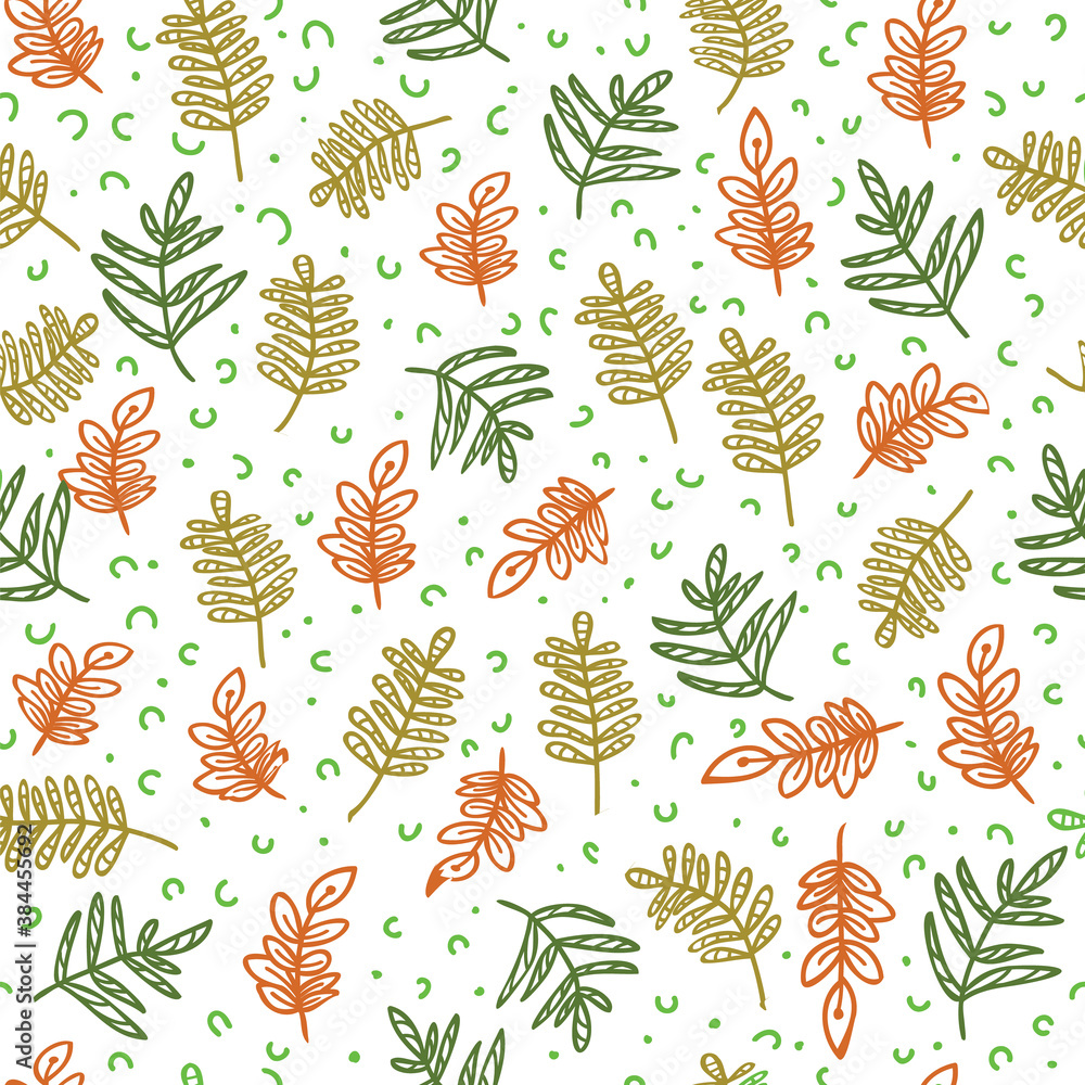 Doodle branch with leaves seamless pattern of hand drawn whi Wallpaper