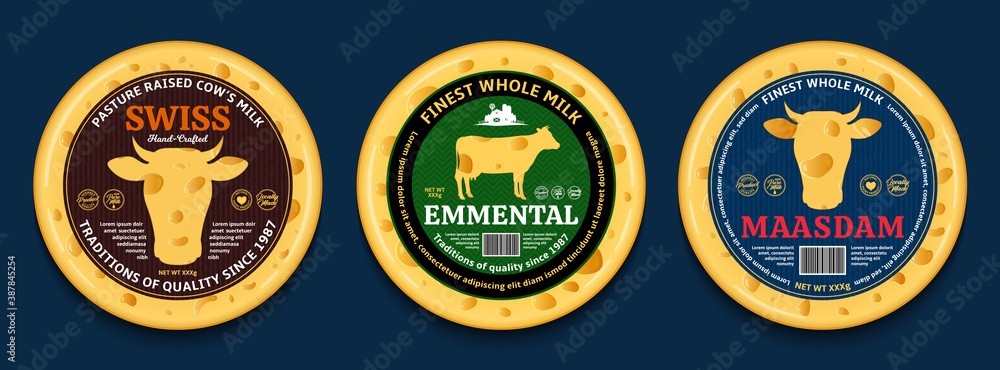 Vector swiss cheese round labels and packaging design elemen Wallpaper