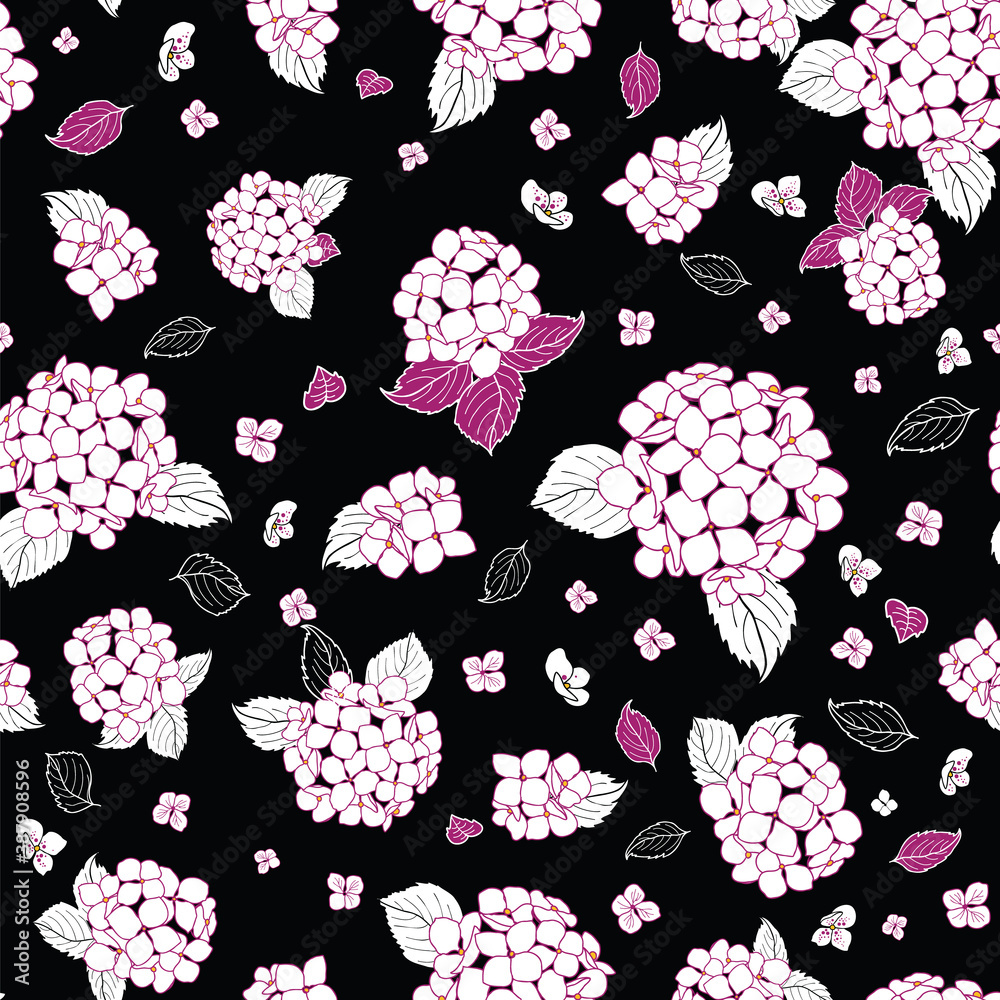 Seamless Pattern Hand Drawn White Round Bouquet Hydrangea Wallpaper Mural - Decorly Solutions | Decorly Solutions
