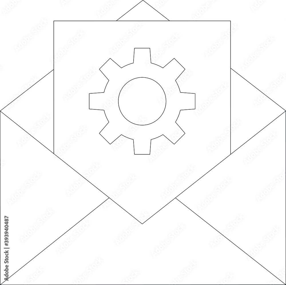 Clean Line Art Icon Of An Envelope With A Gear Isolated On Transparent Background
