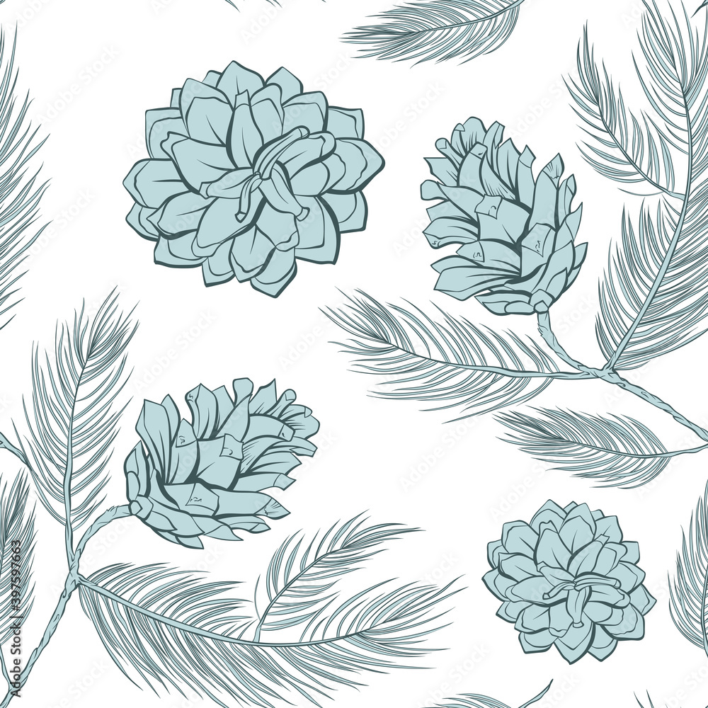 Cones Pattern Of Fir Or Pine Seamless Background Wallpaper Mural - Decorly Solutions | Decorly Solutions
