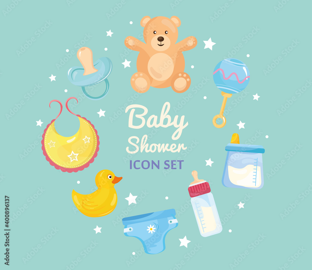 Bundle Of Eight Baby Shower Set Icons Around Wallpaper Mural - Decorly Solutions | Decorly Solutions