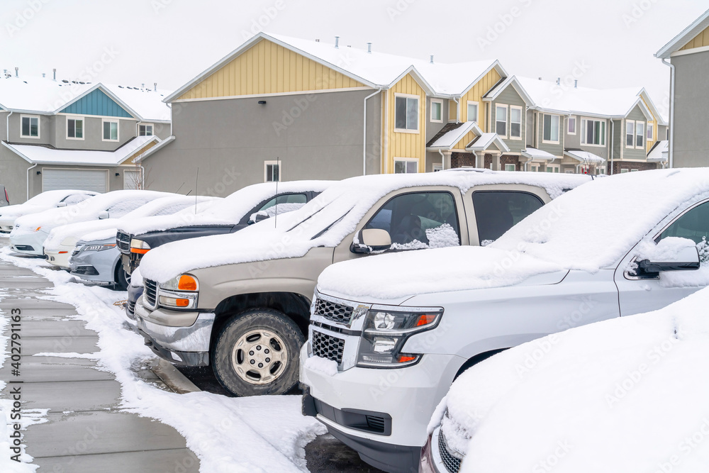 Cars In The Parking Lot Of A Neighborhood Wallpaper Mural - Decorly Solutions | Decorly Solutions
