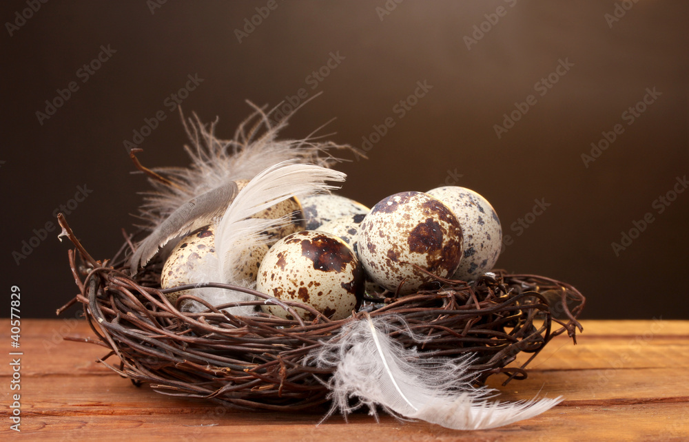 Quail Eggs In Nest On Wooden Table On Wallpaper Mural - Decorly Solutions | Decorly Solutions