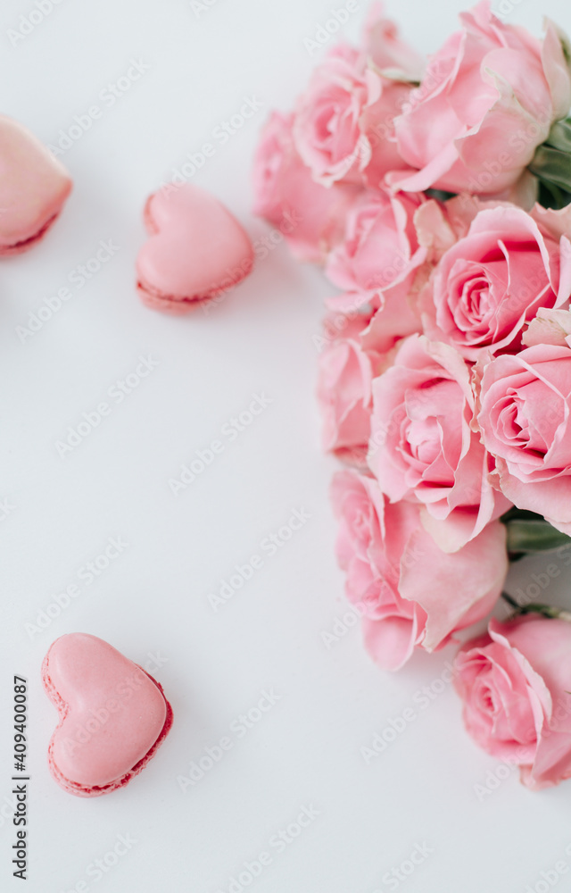 Pink Roses On A White Surface With Pink Wallpaper Mural - Decorly Solutions | Decorly Solutions