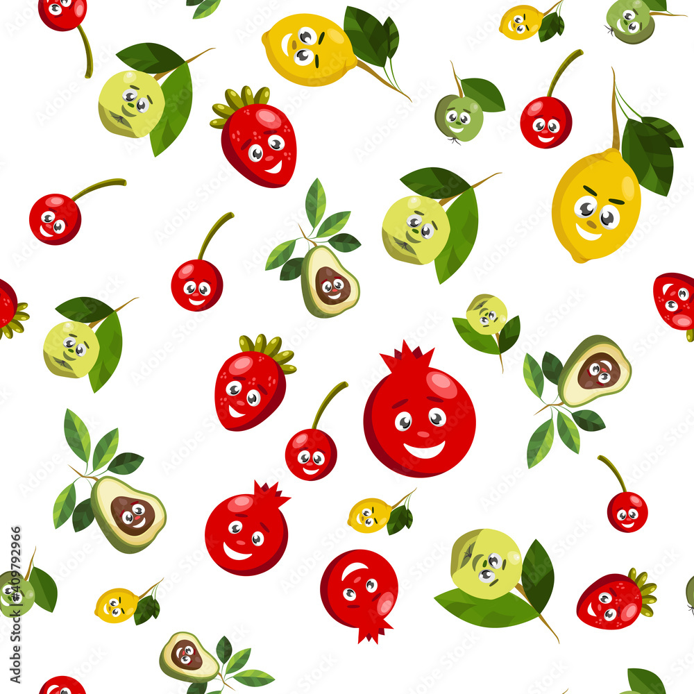 Cartoon Fruits with Funny Faces.